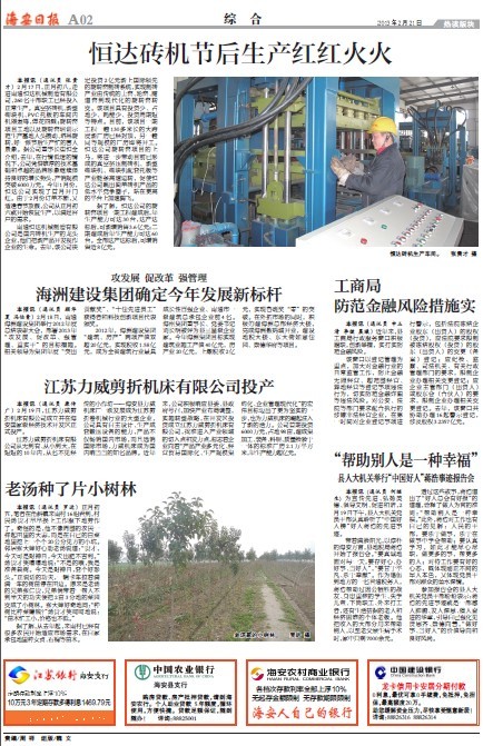 我縣主流媒體《海安日報》也做了相關報道。