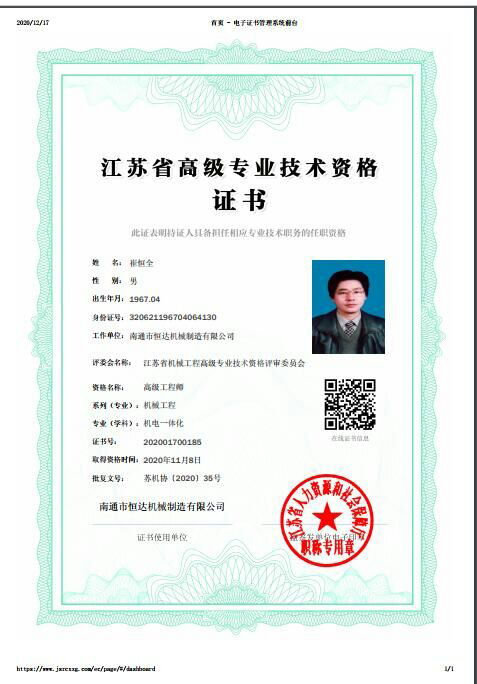 經(jīng)過書面材料審核,常州現(xiàn)場面試,南通恒達公司董事長崔恒全同志通過層層考核,獲評高級工程師并頒發(fā)證書。