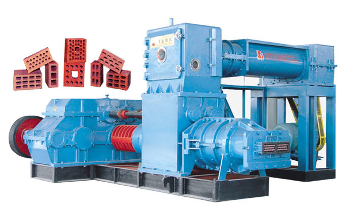 產品說明:該機絞刀軸采用自動調心結構,上級攪拌軸為懸臂裝置,箱體采用全鋼板焊接,整體剛性好。齒輪箱齒輪采用齒輪泵供油潤滑,該機維修簡便,結構緊湊,真空度高。雙泥條硬塑擠出,適用于高孔洞率空心磚,高摻量粉煤灰燒結磚及煤矸石、頁巖磚、低塑性粘土磚的生產。